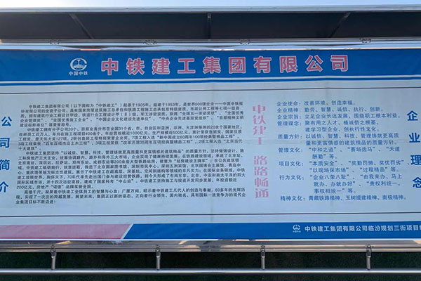 中國中鐵臨汾規劃三街項目經(jīng)理部室外畫(huà)面設計制作安裝工程